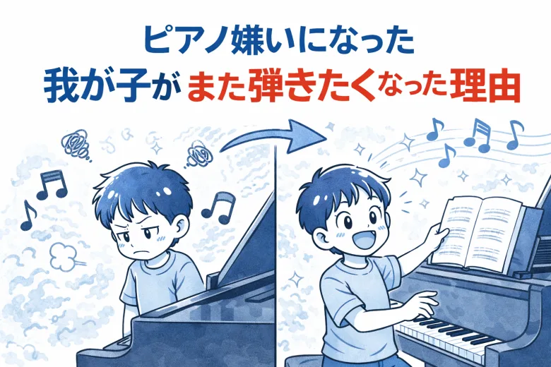 このコラムでは、「ピアノ嫌い」から「また弾きたい」に転じた子どもの事例を元に、その背景にある「本当の理由」と、「親ができる再点火のきっかけ」を、実例とともに紐解いていきます。「うちの子も、もうピアノは終わりなのかな…」と悩む保護者の方に、少しでも希望のヒントになれば幸いです。