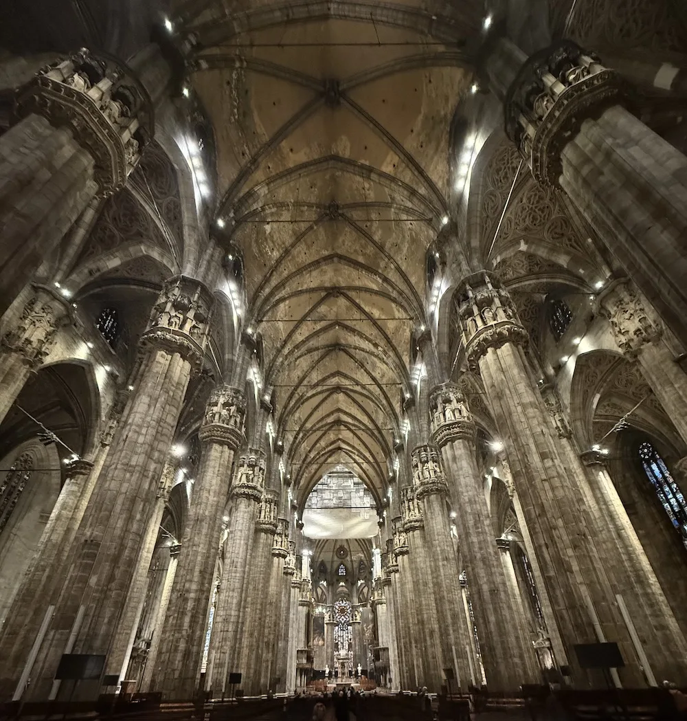 ミラノの街の中心に、白く輝く巨大な山のようにそびえ立つ「ドゥオーモ(ミラノ大聖堂)」。その135本もの尖塔が空を刺すような外観を前にすると、あまりの神々しさに言葉を失います。前回のコラムではオペラの聖地「スカラ座」をご紹介しましたが、実はそのすぐ近くにあるこの大聖堂もまた、音楽を学ぶ私たちにとって欠かせない「学び」の場所です。