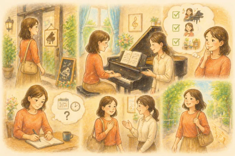 ピアノを始めようと思い立ったとき、誰もが最初に通る道が「体験レッスン」です。インターネットで「地域名+ピアノ教室」と検索し、魅力的なホームページを見つけ、勇気を出して申し込んだその日は、新しい世界への扉が開く記念すべき日。しかし、特に個人教室を訪ねる場合、そこには大手音楽教室とは異なる「独自の距離感」と「守るべきマナー」が存在します。